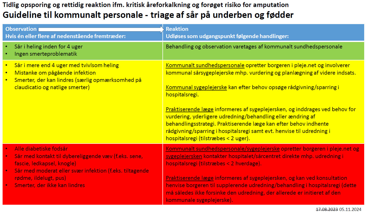 Speciel opmærksomhed ønskes på de ”røde patienter” jf. Guideline til kommunalt personale – triage af sår på underben og fødder.