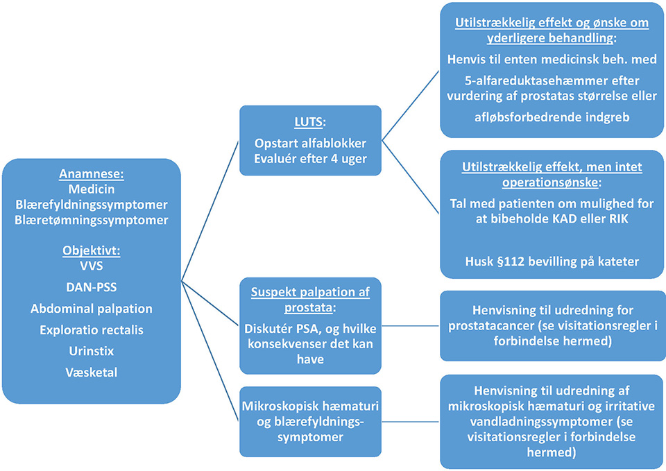 - Fokuseret vandladningsanamnese. Vær opmærksom på hurtigt udviklede symptomer og på evt. medicinændringer. Her kan anvendes DAN-PSS
