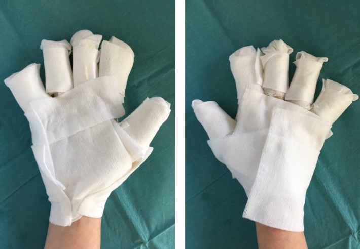 Mens brandsårene heler er det vigtigt, at patienten bevæger fingrene, så leddene ikke bliver stive