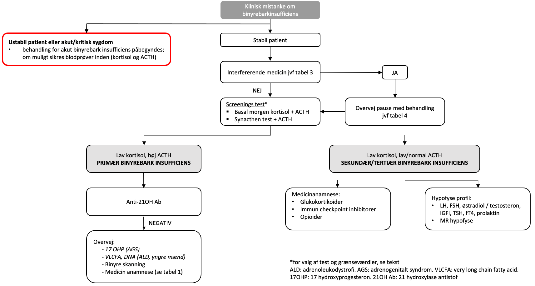 Flowchart: Vejledende algoritme for udredning af binyrebarkinsufficiens