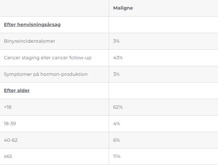 Tilfældigt billeddiagnostisk fund af en binyretumor >1 cm hos patienter under udredning for anden sygdom