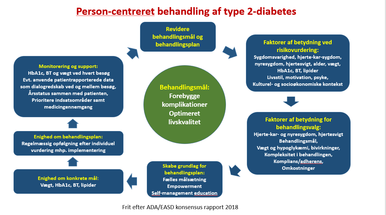 Regelmæssige konsultationer er vigtig for at fastholde og motivere til livsstilsændringer, regulere metaboliske faktorer og dermed forebygge udvikling af diabetiske komplikationer