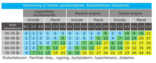 Præ-test sandsynlighed for signifikant koronararteriestenose (>50 % af lumen). Venligst udlånt af Dansk Cardiologisk Selskab, https://www.nbv.cardio.dk/ihs