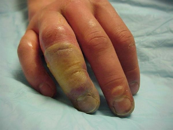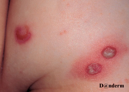- Der ses vesikler og bullae i håndfladen, på fingrene, evt. i fodsålen med risiko for sekundær infektion
