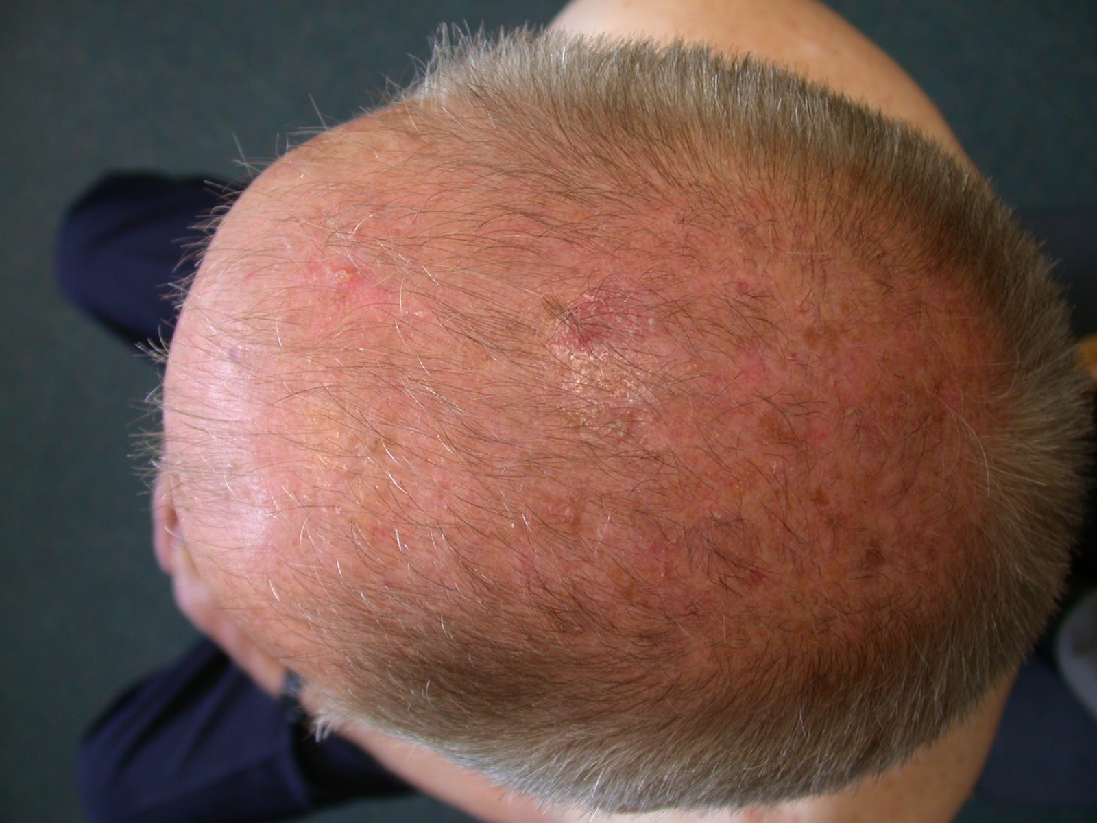 Eksempler på ardannende hudsygdomme i hårbunden er frontal fibroserende alopeci og follikulitis decalvans