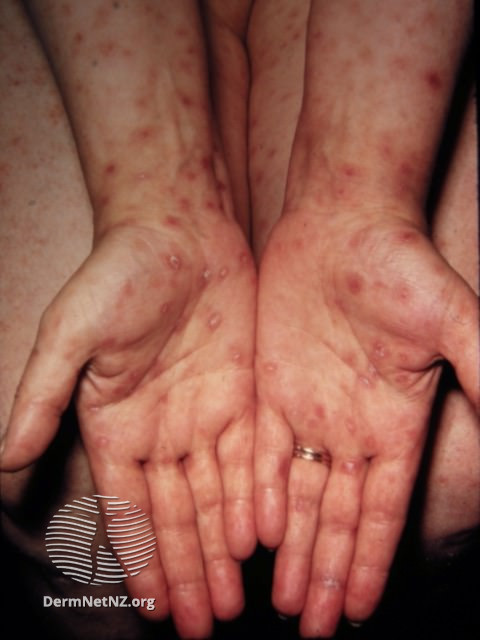 Syfilis i 2. stadie, roseola. Foto venligst udlånt af DermNet