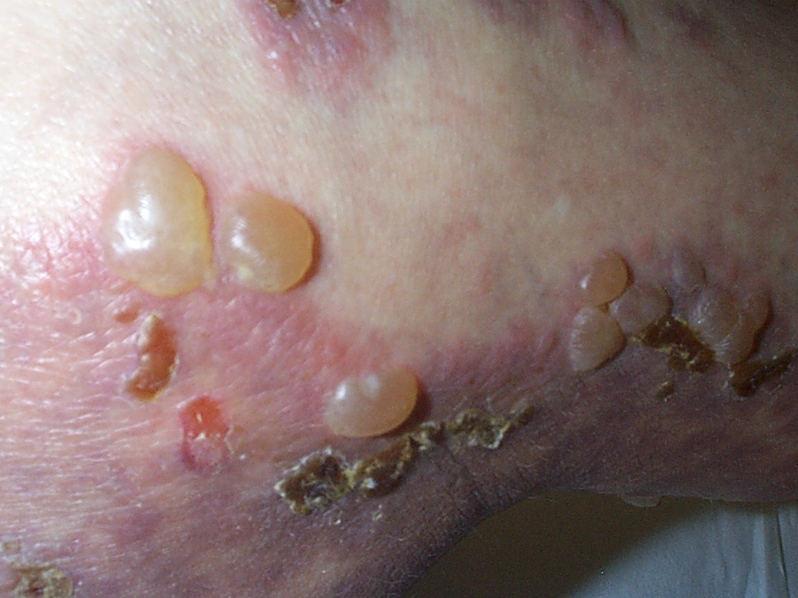Ved multiple store blærer eller infektion i huden er forandringerne ofte smertefulde