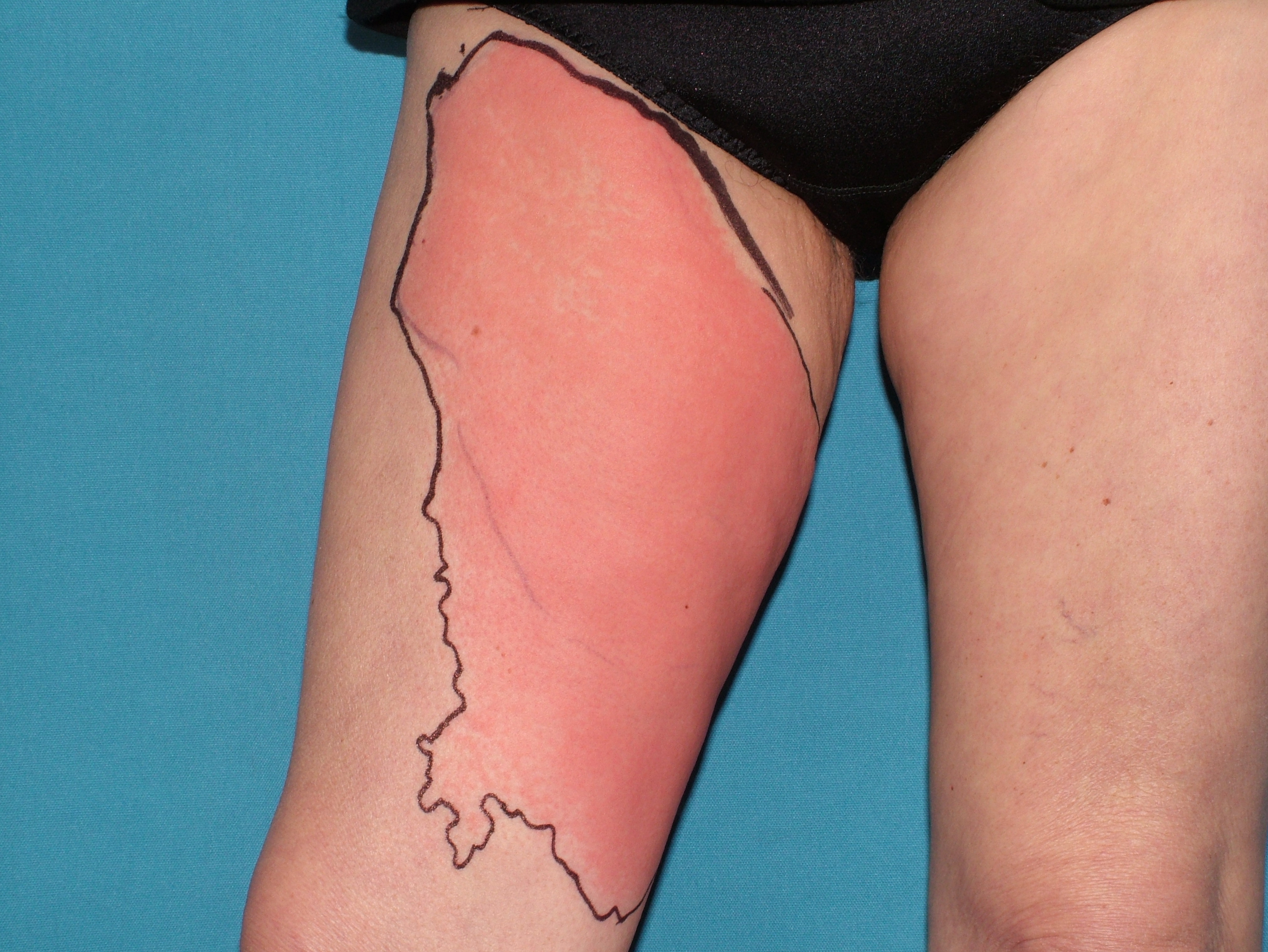 Hvis lokaliseret til underben da kompression med støttebind for at undgå udvikling af kroniske ødemer 2