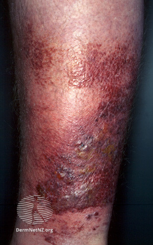 Hvis lokaliseret til underben skal tåinterstitser efterses for fissurer og svampeinfektion