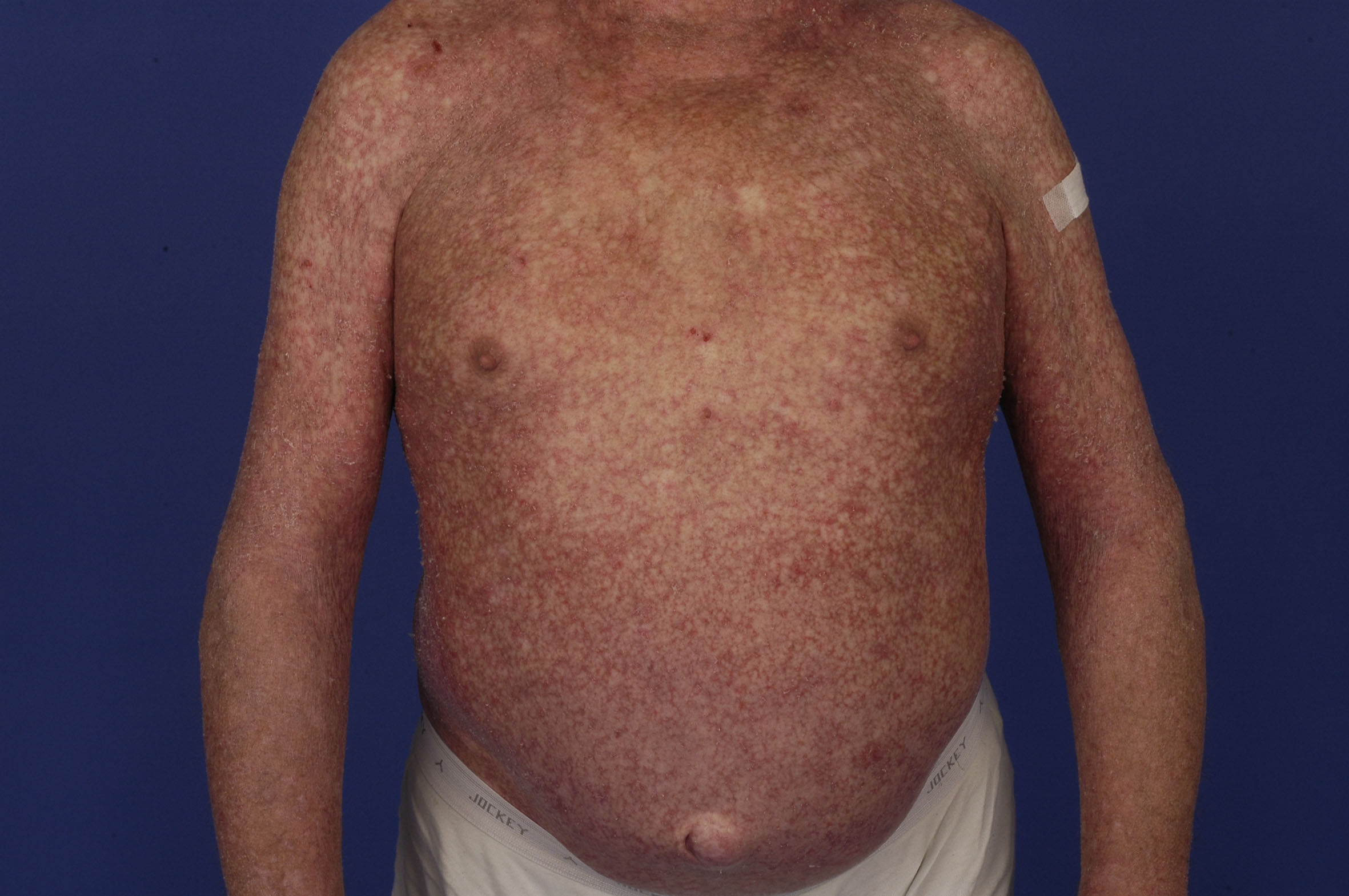 Udslættet debuterer oftest på truncus og konfluerer langsomt