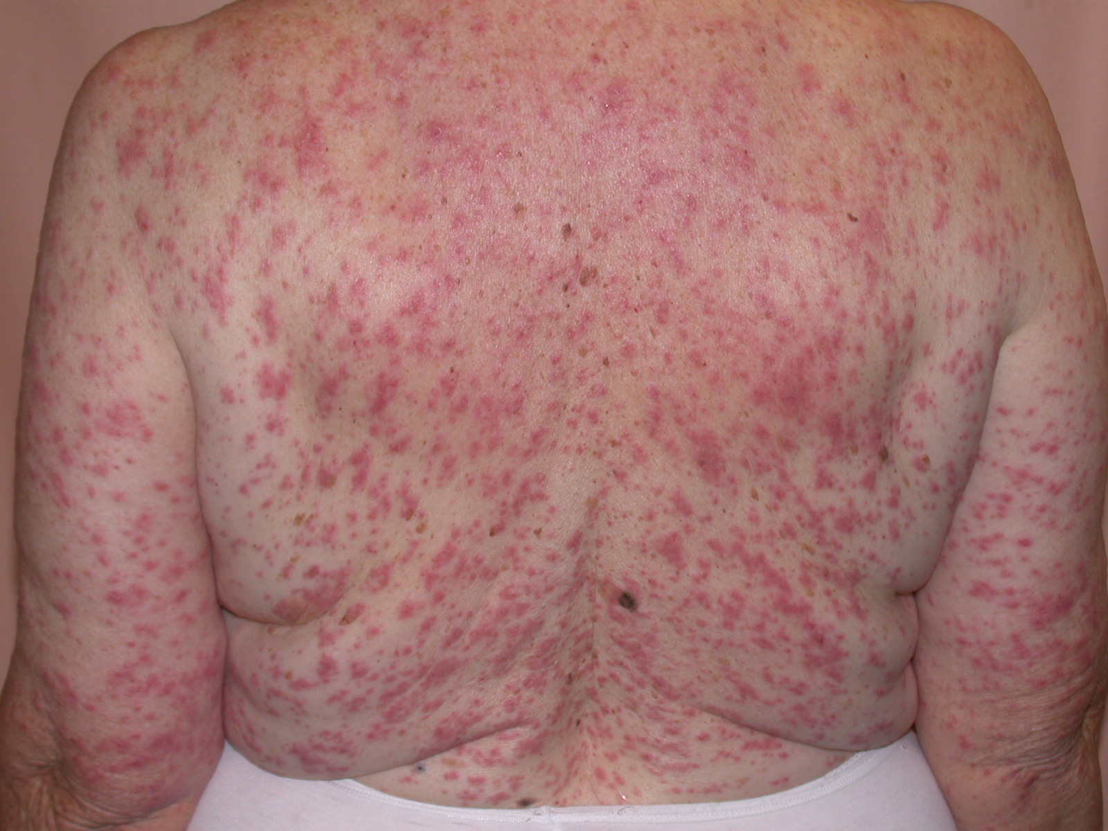 Udslættet er oftest et kløende makulopapuløst, morbilliformt eller generaliseret eksantem