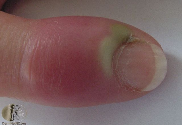 Kan f.eks. opstå som følge af flosset neglebånd og aktiviteter som neglebidning, fingersutning, hårdhændet manicure eller brug af kunstige negle