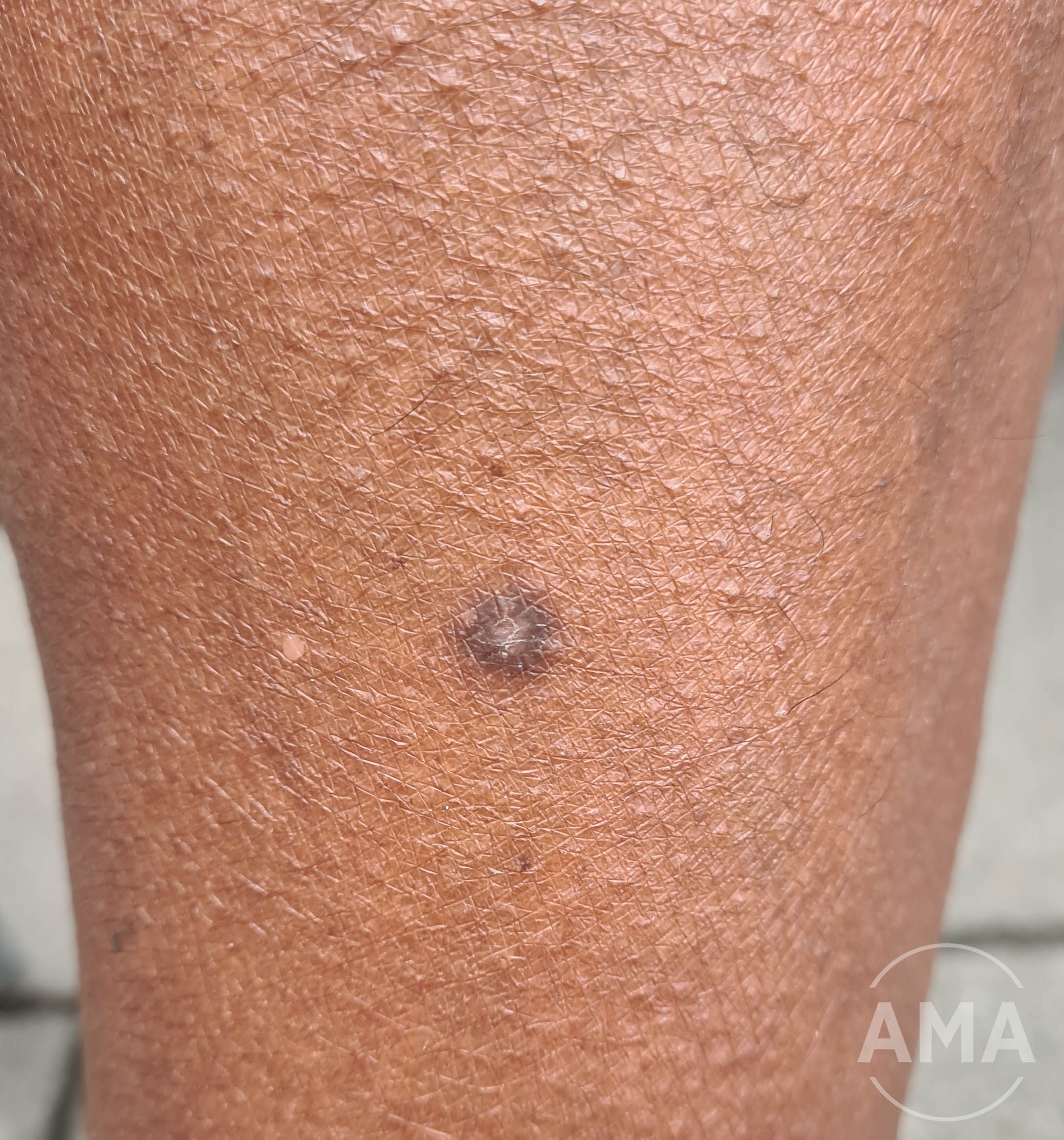 Ved fund af en glat, fast, gummiagtig 7-10 mm diameter, lyserød til gråbrunlig tumor på skinnebenet med positivt smilehus tegn er diagnosen ret oplagt