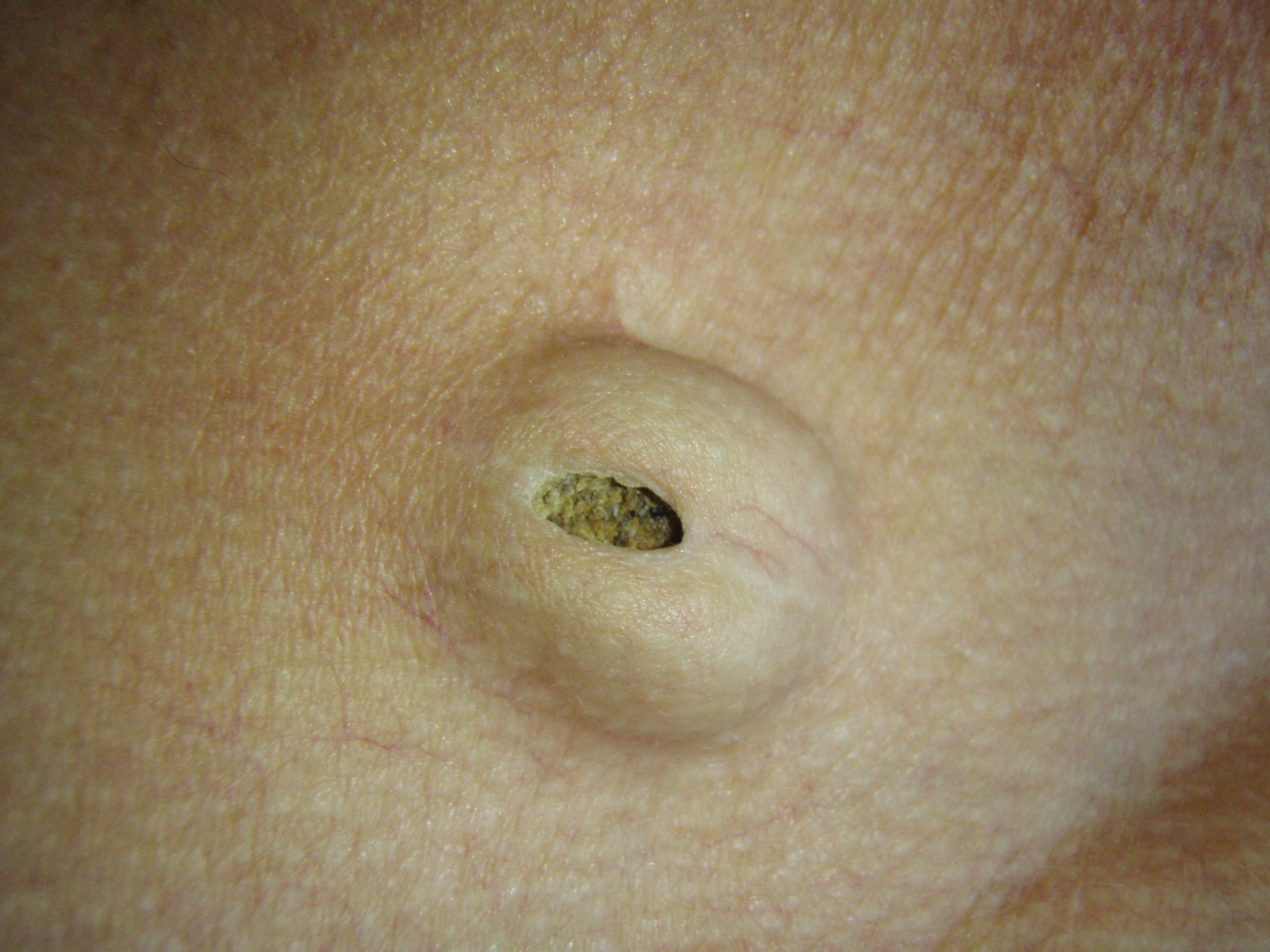 Blev tidligere betegnet talgcyste (sebaceøs cyste), men dette er ikke korrekt, da talgkirtler ikke er involveret i disse cyster1