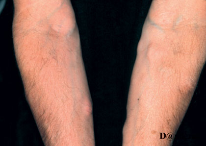 Multiple lipomer på underarmene. Foto venligst udlånt af Danderm
