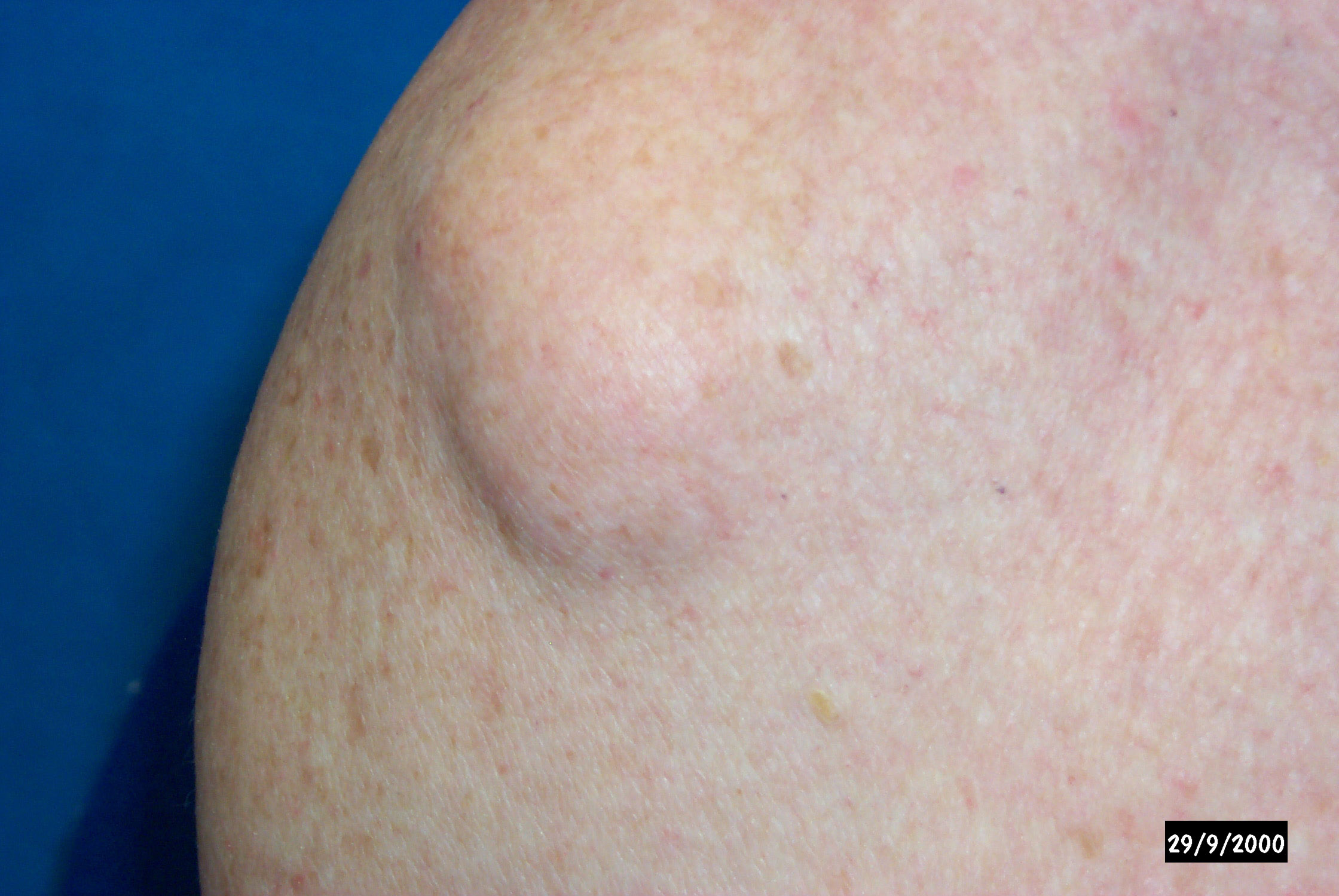 Typisk udseende: Rund, glat, frit forskydelig subkutan tumor