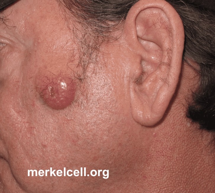 Mercelcelle carcinom på kinden. Foto af Merkelcelle hudkræft på kind