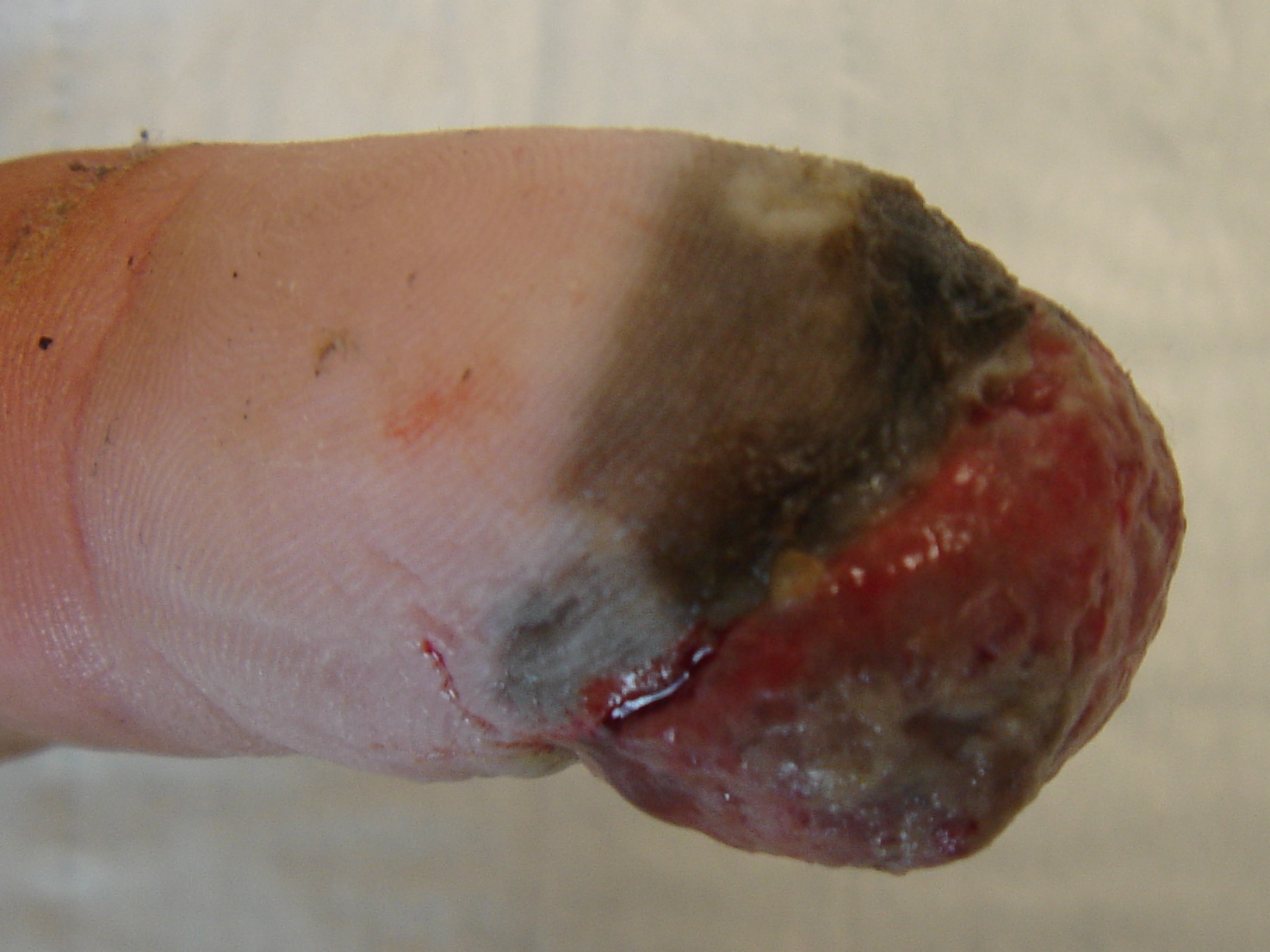 Blødning eller sårdannelse i et modermærke uden forudgående traume
