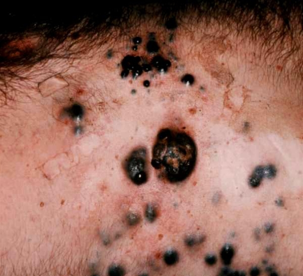 Udvikler sig også på steder på kroppen, som ikke eksponeres for sollys