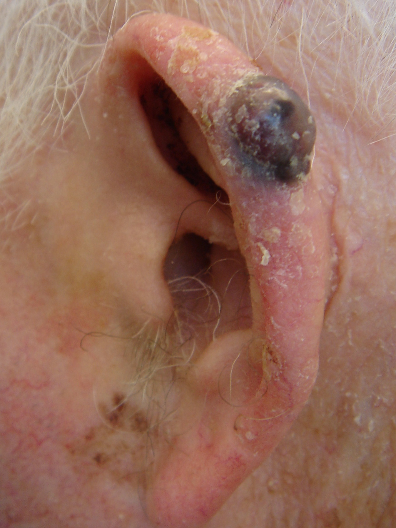 Efter den maligne transformation bliver tumor invasiv og penetrerer ned i og udenfor dermis