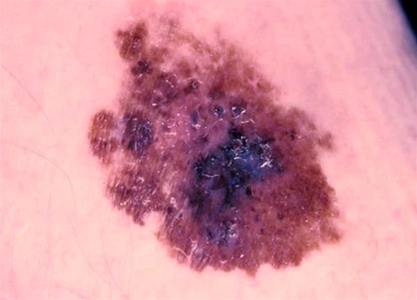 Sort og mørkebrunt pigment i kombination med blå, hvide (mælkeslør), grå, pink farver øger sandsynligheden for, at det er modermærkekræft