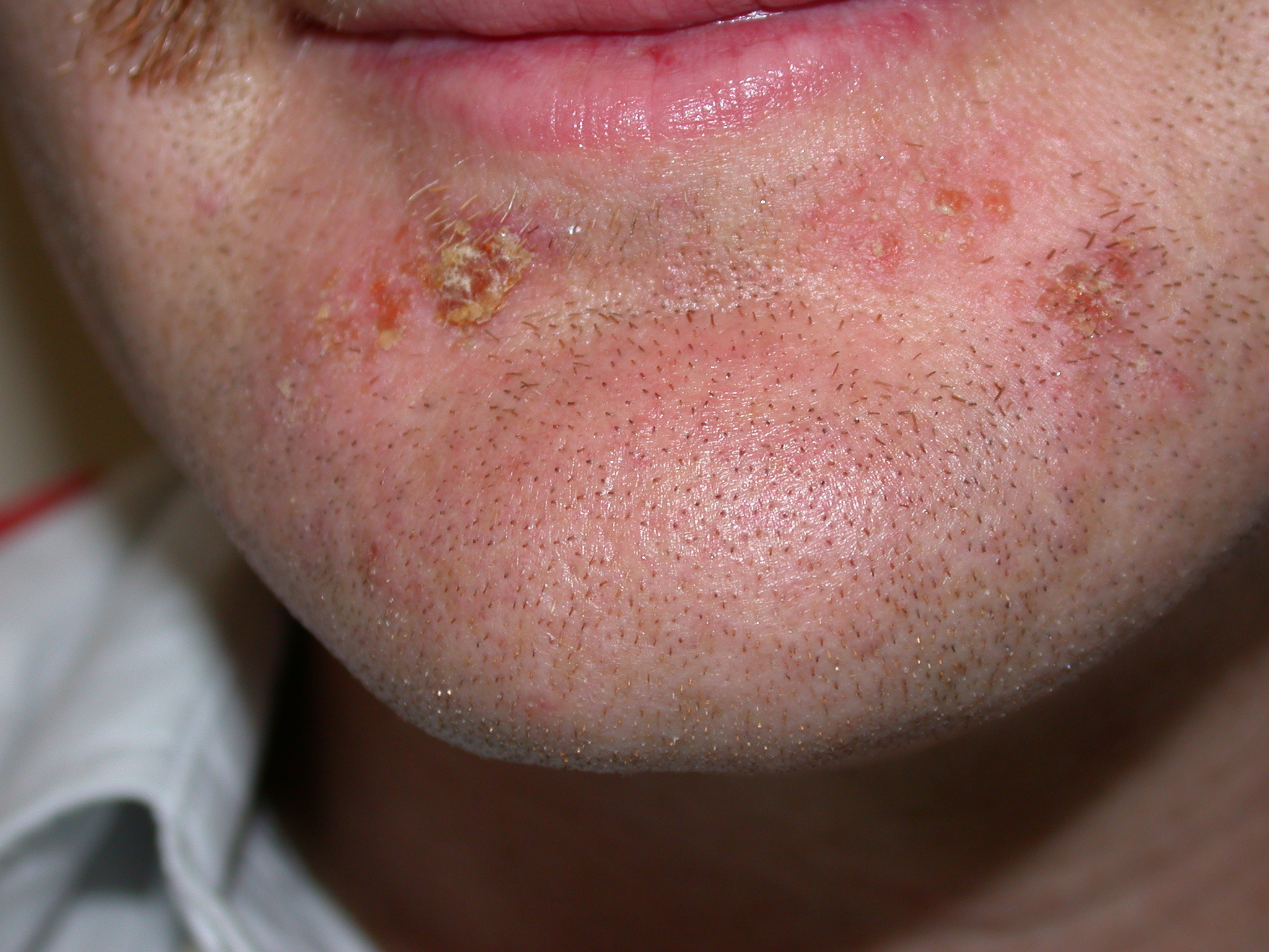 Inficerede skorper skal blødes op ved bad, vask eller omslag, og fjernes. Fastsiddende skorper skal ikke røres.