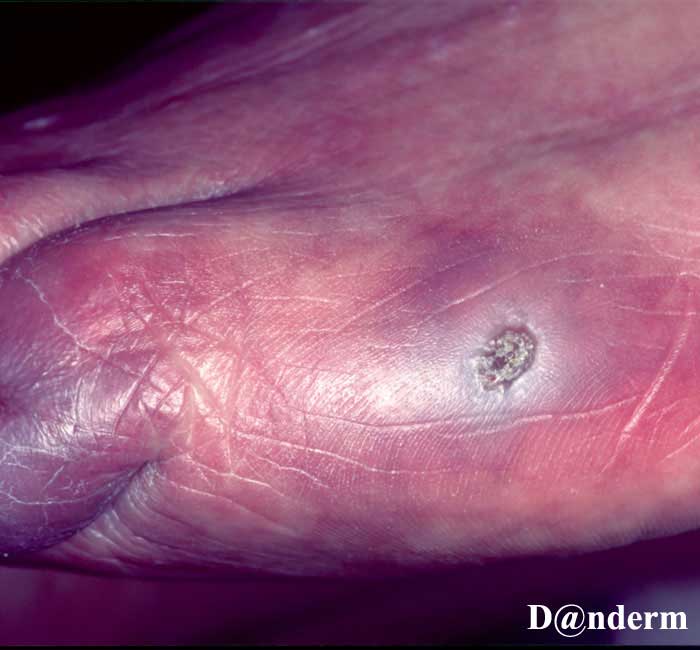 Lokal iskæmi i huden med nekrotiserende sår ses også ved fx vaskulitis