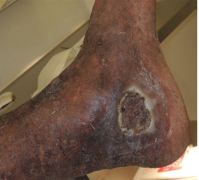 Typisk et ulcus cruris eller pedis, som ikke heler hos en patient, hvor venøs insufficiens ikke er den primære årsag
