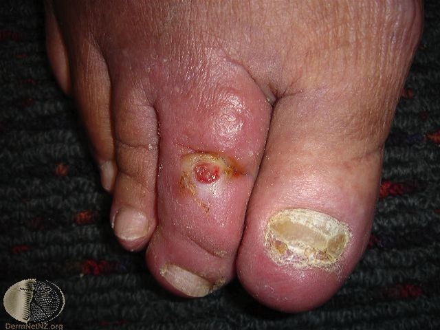 Arterielle sår på tæerne kan opstå ved uforsigtig fodpleje og negleklipning