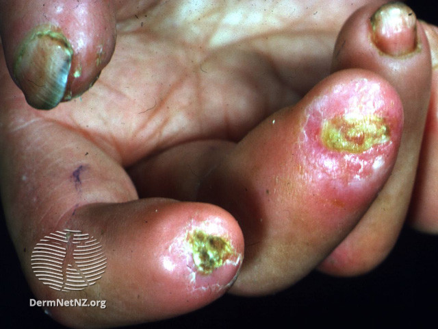 Sklerodermiske fingersår. Foto venligst udlånt af DermNet