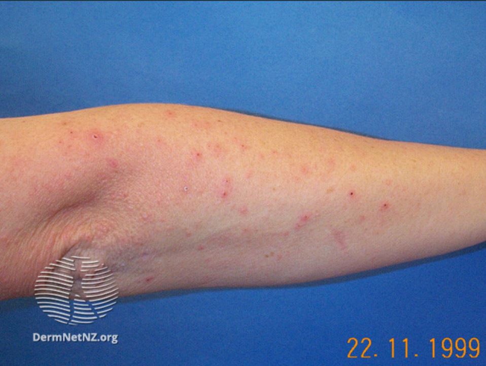Ofte spredning af udslæt til baller og proksimale del af lårene - og udslættet kan blive generaliseret