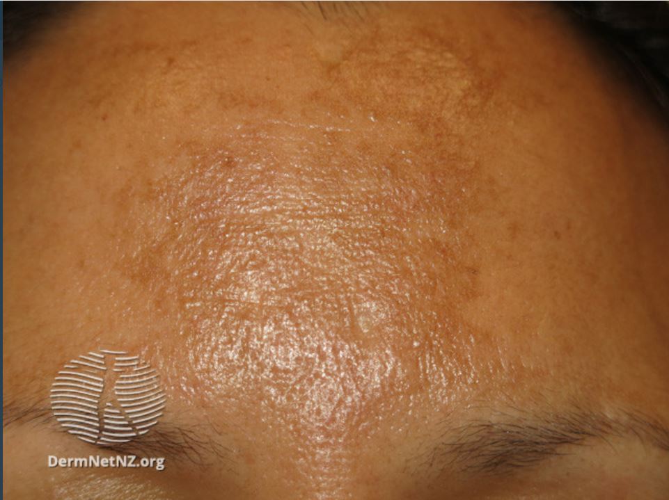 Foto af pande med melasma. Melasma i graviditeten, foto venligst udlånt af dermnet.
