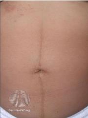 Det er typisk, at området lige omkring navlen ikke er afficeret