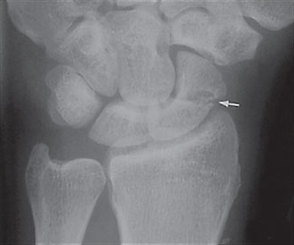 - Primært immobiliseres håndleddet, indtil det er afklaret, om der er fraktur