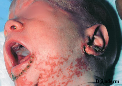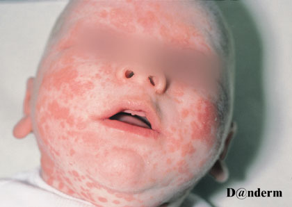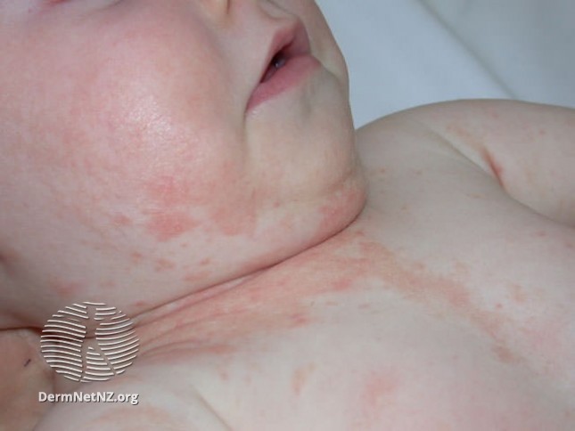 Foto af spædbarn med bledermatit.Foto venligst udlånt af DermNet