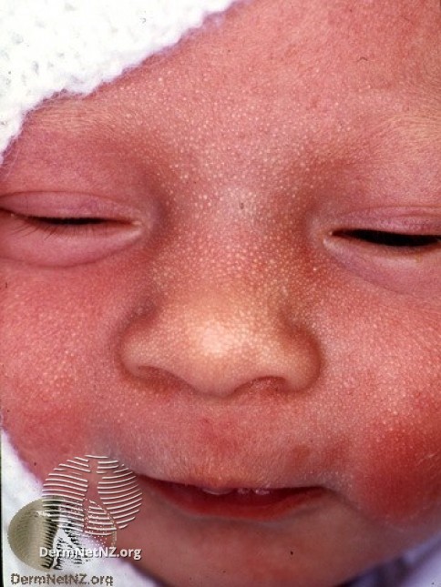 Foto af nyfødt med milia i ansigtetFoto venligst udlånt af DermNet
