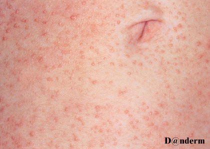 Nærbillede af huden på maven med varmeknopper. Foto venligst udlånt af DandermFoto venligst udlånt af DermNet