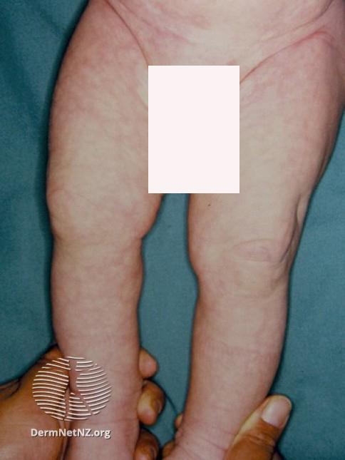 Foto viser lipoatrofi hos nyfødt.Foto venligst udlånt af DermNet