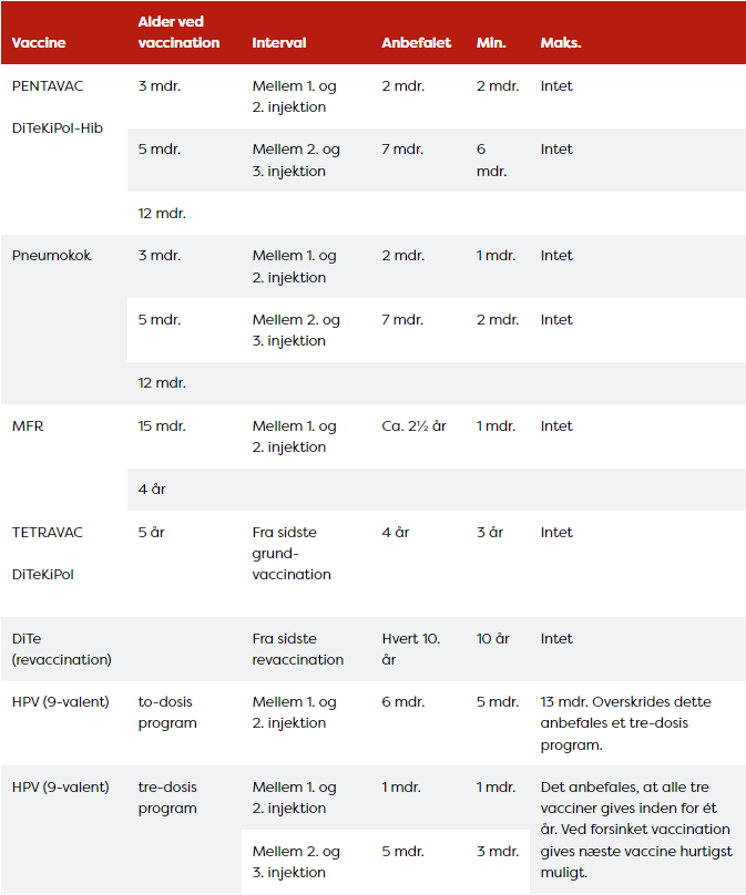 Vaccination plan og intervaller