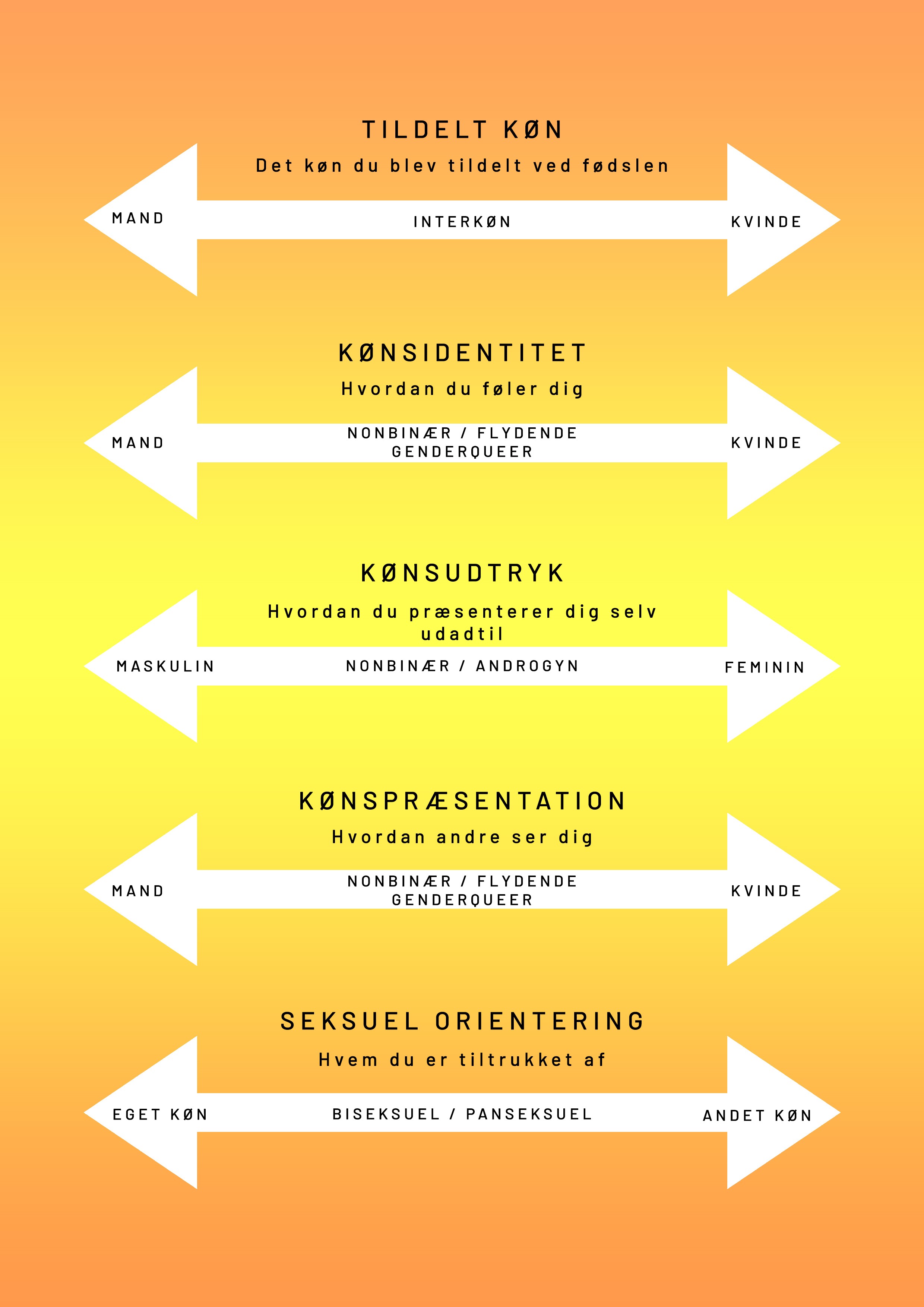 Identitet: En persons grundlæggende opfattelse af sig selv, fx i forhold til køn og seksuel orientering
