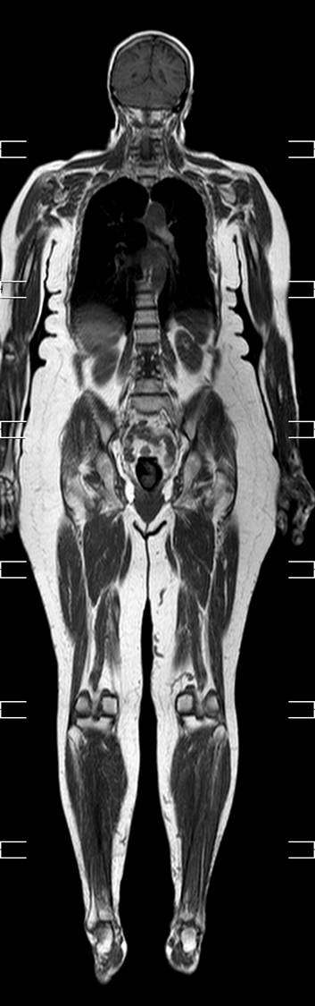 Helkrops MR-skanning. Det tager under 30 minutter at nå fra top til tå 2 gange. Man laver en fedtsupprimeret T2-vægtet skanning , hvor man får fremstillet, hvor der er vand i kroppen.