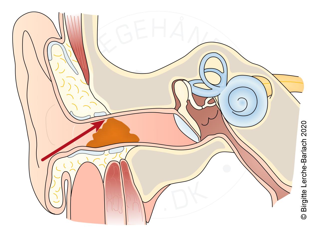 - Ofte blokeres indsyn til trommehinden af ørevoks